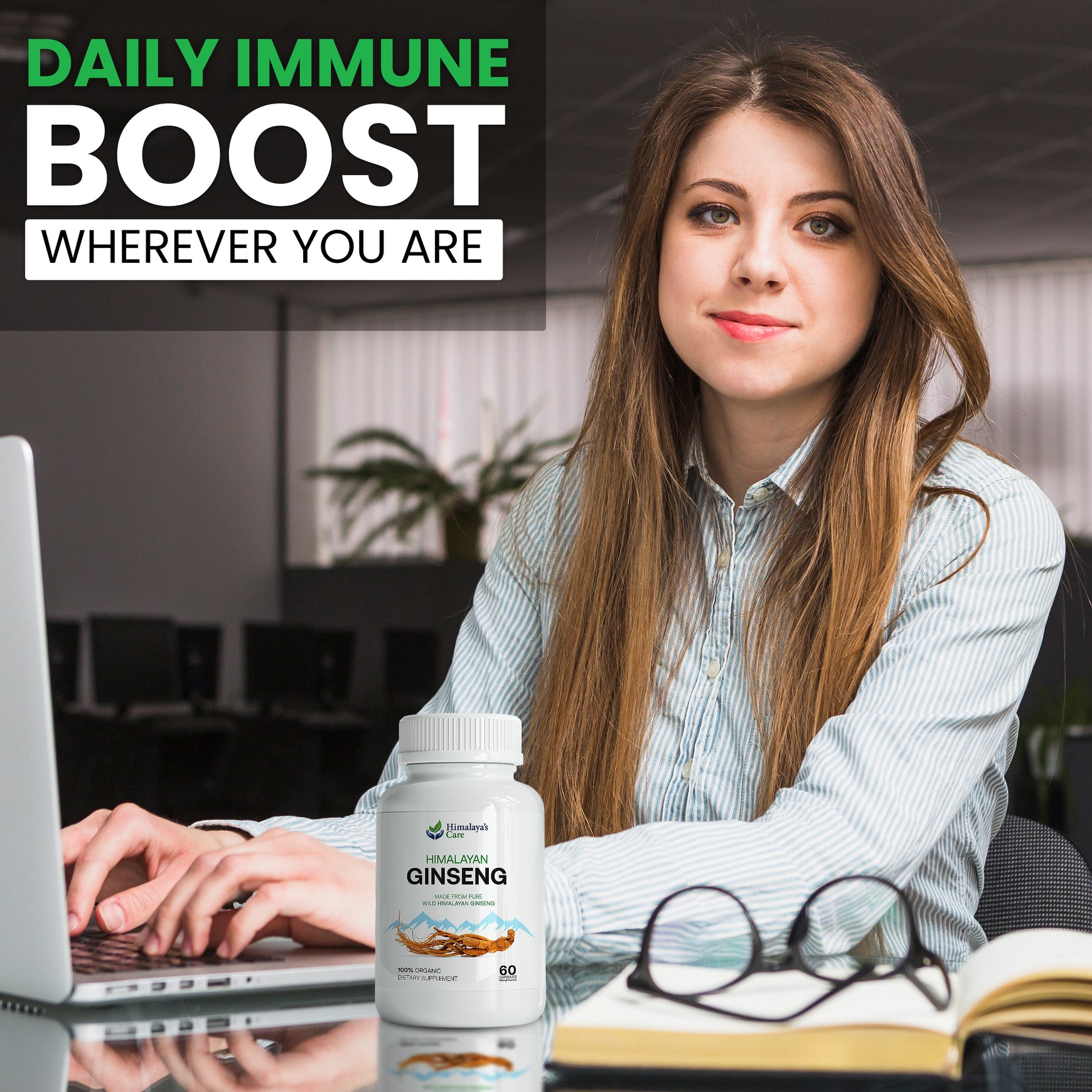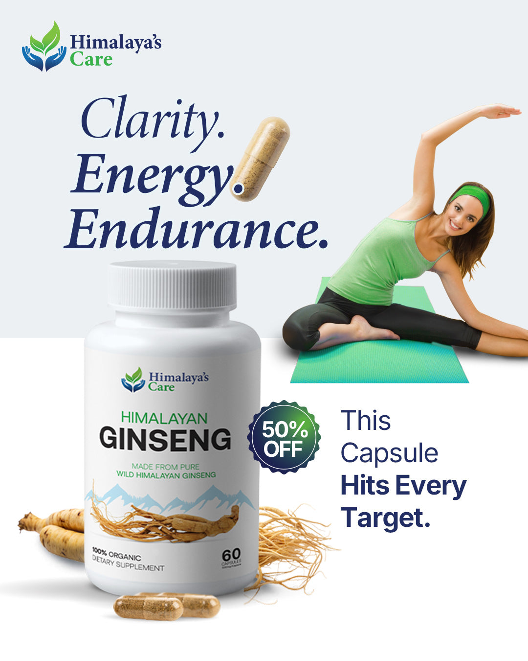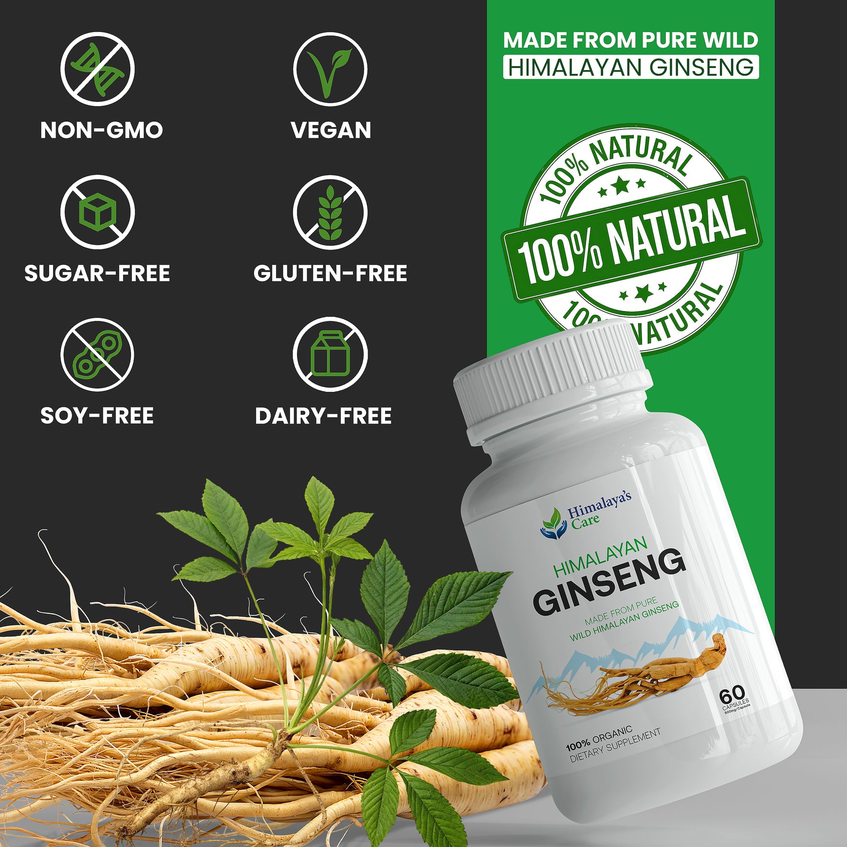 Premium Panax Ginseng: Derived from Himalayan regions, our Ginseng capsules are a natural solution for stress management and energy enhancement.
