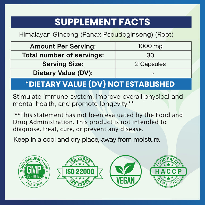This bottle of 60 capsules is your stock for 1- 2 months of consumption. Panax Pseudoginseng compounds can be a life-changer for you with their numerous healing properties. So, reap the ultimate Himalayan Ginseng benefits for men and women and start your holistic journey to a better lifestyle.